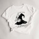 Womens witchy t-shirt with graphic and text quote - beware of the witch who resides within.