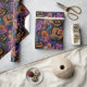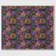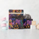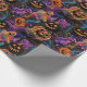 Holiday gift wrapping paper is shown in a festive Halloween print.