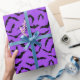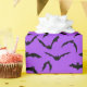 Gift wrapping paper is shown in a Halloween bats print.