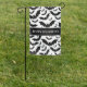 This Halloween yard flag is shown in the outdoor style with a festive bats print.