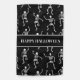 This Halloween yard flag is shown in the outdoor style with a festive dancing skeletons print.