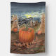 I imagined this scene while waiting in great anticipation for Halloween. Corvids; crows and ravens are mysterious spirits, associated with the Dark Goddess and the afterlife, in this piece of art I imagined they are the keeper of the mysteries of Halloween. This dark bird parts the veil between the worlds with a strange skeleton key, reminding us of our ancestors that have come before us. The full moon illuminates the scene through the clouds. The last of the harvest has been cleared from the land as winter awaits just around the corner, both corn and pumpkins are New World produce, a nod to the early days when the traditions of Halloween were first brought to America. An old fashioned sickle rests against a sheaf of corn and represents both the abundant harvest as well as the fleeting of life. We see an old bare tree on the horizon, a reminder of the bare winter coming and the mysteries of life, death, and rebirth.