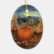 I imagined this scene while waiting in great anticipation for Halloween. Corvids; crows and ravens are mysterious spirits, associated with the Dark Goddess and the afterlife, in this piece of art I imagined they are the keeper of the mysteries of Halloween. This dark bird parts the veil between the worlds with a strange skeleton key, reminding us of our ancestors that have come before us. The full moon illuminates the scene through the clouds. The last of the harvest has been cleared from the land as winter awaits just around the corner, both corn and pumpkins are New World produce, a nod to the early days when the traditions of Halloween were first brought to America. An old fashioned sickle rests against a sheaf of corn and represents both the abundant harvest as well as the fleeting of life. We see an old bare tree on the horizon, a reminder of the bare winter coming and the mysteries of life, death, and rebirth.