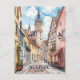 This postcard offers a lovely whimsical illustration representing the streets of the lake town of Hallstatt, Austria. It is a great postcard for travelers to Austria's magical destinations.