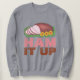 Sweatshirt features an illustration of a holiday ham on a platter with pineapples, and HAM IT UP in a fun font. Great for an ugly Christmas sweater party!