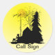 We've given a more sophisticated look to the outdoor Ham Operator with this silhouette design of a Amateur Radio Operator outdoors with his rig, a antenna, a tent and some trees. On this button we've put the bright yellow sun behind, creating the dark silhouette look. You can also customize this with a call sign or anything else you' d like. NOTE: If you want to change the shape that we're offering this on to another shape, you'll have to adjust the font sizes (and maybe the style?) To do that, just go to "Customize" and then click the line of text (right side) and use the buttons. "F" - fonts Black box - colors + and - for sizing. You can go into the "Design" mode to have your mouse move things also. Got questions? Just write me.