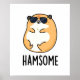 Ham-some Funny Handsome Hamster Pun features a cute hamster looking really handsome. Perfect pun gift for family and friends who love cute handsome hamster puns.