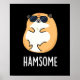 Ham-some Funny Handsome Hamster Pun features a cute hamster looking really handsome. Perfect pun gift for family and friends who love cute handsome hamster puns.