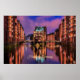 Hamburg Germany at Night, picturesque city lights, buildings and bridges.
