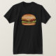 Destei's illustration of a hamburger that has a sesame seed bun that is filled with cheese, lettuce, beef, tomato, ketchup and pickles.