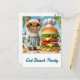 "Add some fun and flavor to your beach party with this delightful postcard featuring a delicious hamburger, perfect for cat lovers! With a whimsical, beachy vibe, this card brings together the joy of a beach party and the love of good food. Whether it’s for a summer celebration, birthday, or a casual gathering, this postcard is the perfect way to invite guests to the ultimate beach party!"