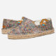 It’s been affectionately named Afridrille because it's inspired by the Spanish espadrille style, but it’s 100% made in Africa. The shoe retains the look and feel of the espadrille while weaving in the local African flair through unique custom designs, indigenous African patterns, and the kanga fabric (a colorful triangle garment worn throughout East Africa).