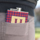 Handsome design celebrating your Scottish heritage, features monogram letter H in Clan Hamilton tartan plaid with matching background and customizable text