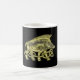 An ancient Celtic symbol of a hog, done in hammered brass on a black background.