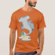 My 11 yo wore adult XL (5’7” 165#). The 8yo is small framed. She wore adult small and tied it in the back. Grandma wore adult large with long sleeve shirt underneath. Tall girl adult medium. Dark haired male adult large. Good quality dark Heather gray, Gildan brand shirt. -it was next up from basic choice and cost about $20 per shirt. Not too thick or thin. Washed and dried well, no major shrinkage. Not see-through. Can wear a bra under it fine. Screen print is just as shown and well done, front and back.