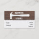 This business card will definately help you get noticed. At the top is a border of old barn wood with a white hammer graphic. At the bottom is bright white. Creating a border to divide the two is a row of nail heads. This is a great business card for anyone involved in construction, handy man, or maintenance work.