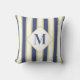 Hamptons Blue White and Gold Striped Yacht Throw Pillow