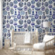 Peel and stick Hamptons style ginger jars patterned wallpaper in shades of blue and white