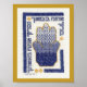The hamsa, symbol of God's blessings and protection, is worked in shaded blackwork embroidery technique. The accompanying Hebrew words read "Blessed shall you be in your coming, and blessed shall you be in your going" (Deuteronomy 28:6). Profits from the sale of this poster are directed to the Fabrangen Havurah in Washington, DC.