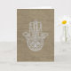 HAMSA Hand of Fatima symbol amulet, tribal triangles, swirls circles dots eye centre, white trendy Hamsa is talismanic symbol of a hand with a eye on the palm, believed to protect from harm against the evil forces and bring goodness, abundance, fertility, luck and good health. Soft cream burlap texture effects background, white , cream colours. Personalize it with your name favourite word or phrase by clicking the customise button and add text, choose the text font and colour. Image print