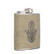 HAMSA Hand of Fatima symbol amulet, tribal triangles, swirls circles dots eye centre, colourful trendy watercolours. Hamsa is talismanic symbol of a hand with a eye on the palm, believed to protect from harm against the evil forces and bring goodness, abundance, fertility, luck and good health. Soft cream burlap texture effects background, grey, cream colours. Personalize it with your name favourite word or phrase by clicking the customise button and add text, choose the text font and colour. Image print