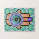 The Hamsa is used as an amulet (a symbol of protection). This hamsa has an OM symbol in the very center of the eye, two mandalas on two fingertips and a blue swirl on the center fingertip signifying energy. This hamsa is also a reminder of the healing energy which we can direct from our hands.