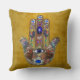 Hamsa Hearts Flowers Opal Art on Gold Throw Pillow