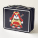 This is a standard metal lunchbox that appears to work just fine. We designed this box ourselves with an uploaded photo and custom text on the front and back. It looks absolutely beautiful except the front of the lunchbox is not centered like it shows in the photo. The print borders don't align with the inset flat part of the box where the preview photo online showed it perfectly centered in there. The back looks nice and centered though.