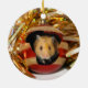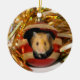 An ornament within an ornament as this golden hamster cozies into a broken Christmas ornament surrounded by gold garland