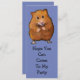 Artwork of a winsome little hamster looking appealingly at the viewer, saying " hope you can come to my party." Customizable.