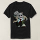 My 11 yo wore adult XL (5’7” 165#). The 8yo is small framed. She wore adult small and tied it in the back. Grandma wore adult large with long sleeve shirt underneath. Tall girl adult medium. Dark haired male adult large. Good quality dark Heather gray, Gildan brand shirt. -it was next up from basic choice and cost about $20 per shirt. Not too thick or thin. Washed and dried well, no major shrinkage. Not see-through. Can wear a bra under it fine. Screen print is just as shown and well done, front and back.