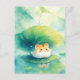 Hamster Under Green Leaf Umbrella on Pond Postcard