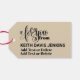 The quality and weight of the paper used was excellent. I love the feminine floral design. I gave received so many compliments on the unique cut of the tag. I also use these tags as a business card. This is my 3rd time ordering this design. I love it! I was very pleased with the printing. I was excited that I was able to print separate messages on both sides of the tag. Very clean look.