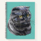 Hand drawing funny fluffy Black brittish cat. Notebook