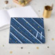 Custom Monogram Guestbook - Hand drawn Abstract Blue white line stripe pattern - Unique, painted, with birds and flower elements, elegant, modern