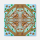 Hand drawn art Owl Mandala blue and brown, Autumn Leaves and tree branches with blue sky.