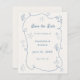 A hand drawn style wedding invitation with beach, coastal theme. A soft ivory colored background, dusty coastal blue elements. Personalize and add your names and the details.