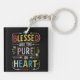 Hand-Drawn Bible Verse: Blessed Pure Heart Keychain