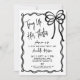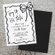 Tying Up Her Thirties 40th Birthday Party Invitation. This vertical invitation design features the phrase “Tying Up Her Thirties” in large, stylish script at the top left for a bold statement. A playful hand-drawn black doodle frame surrounds the layout, while a cute black bow adds charm and detail for a modern yet whimsical vibe.