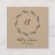 Hand Drawn Black Wreath Monogram Initial Kraft Square Business Card