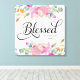 Elegant design featuring soft pink watercolor flowers with greenery and hand-drawn script typography "Blessed." This beautiful accent for your home is personalized with your name and date. Matching "Believe" and "Faith" items available. Perfect for bedroom or living area, makes a great gift! Design©Rosalind Moore, Cherry Lane Designs.