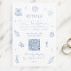 Hand Drawn Blue Coastal Wedding Details QR Code Enclosure Card