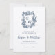 Hand Drawn Blue Floral Crest Monogram Wedding Save The Date