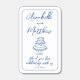 Personalized Wedding Matchbox Favors – A charming and whimsical design featuring the couple’s names at the top, followed by "Thank you for celebrating with us" in a playful blue font. A hand-drawn wedding cake sits at the center, adding a sweet and festive touch.