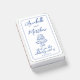 A simple blue line frame elegantly surrounds the design, giving it a classic yet modern feel. The wedding date is displayed at the bottom in blue, making this a meaningful keepsake for guests.