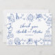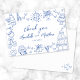 European Inspired Blue and White Hand-Drawn Whimsical Wedding Thank You Card.