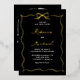 Hand Drawn Bow QR Code Photo Wedding Black Gold Foil Invitation