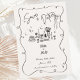 This trendy hand drawn style illustrated wedding save the date invitation features a quirky squiggle wavy border and food and drink doodles. The whimsical and quirky design includes handwritten font and celebration doodles. Black and white style for a trendy and modern wedding invitation.