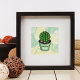Hand drawn Cactus Succulent with green and yellow marble background.