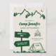 Whimsical hand drawn camp bachelorette party itinerary invitation template in green color. All text, font, and color are editable.